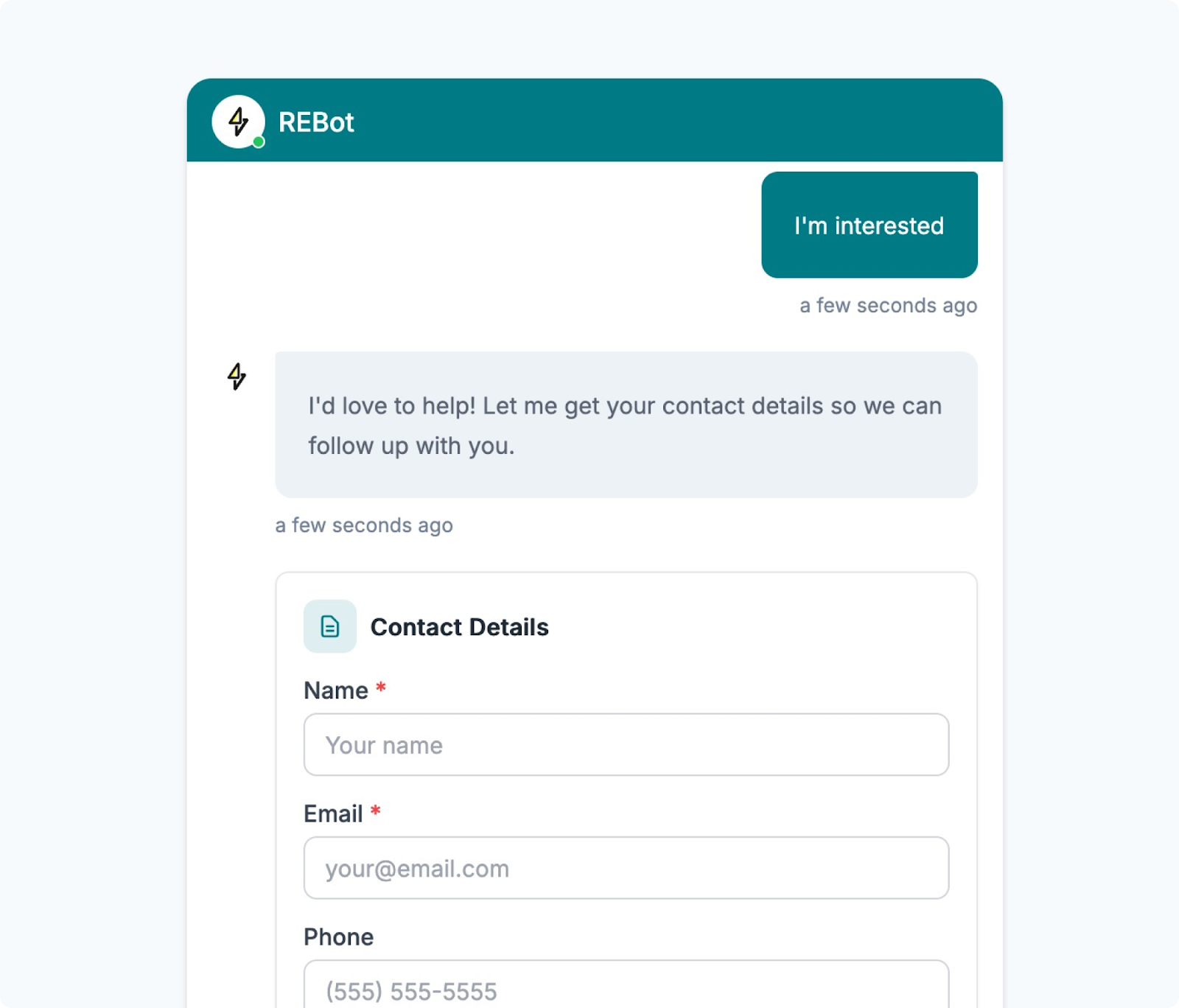 On your website, leads see a clean contact form. On Instagram, Messenger, or WhatsApp, your AI Agent collects the same details through natural conversation. Either way, Follow Up Boss receives rich, actionable context tied directly to the contact record.